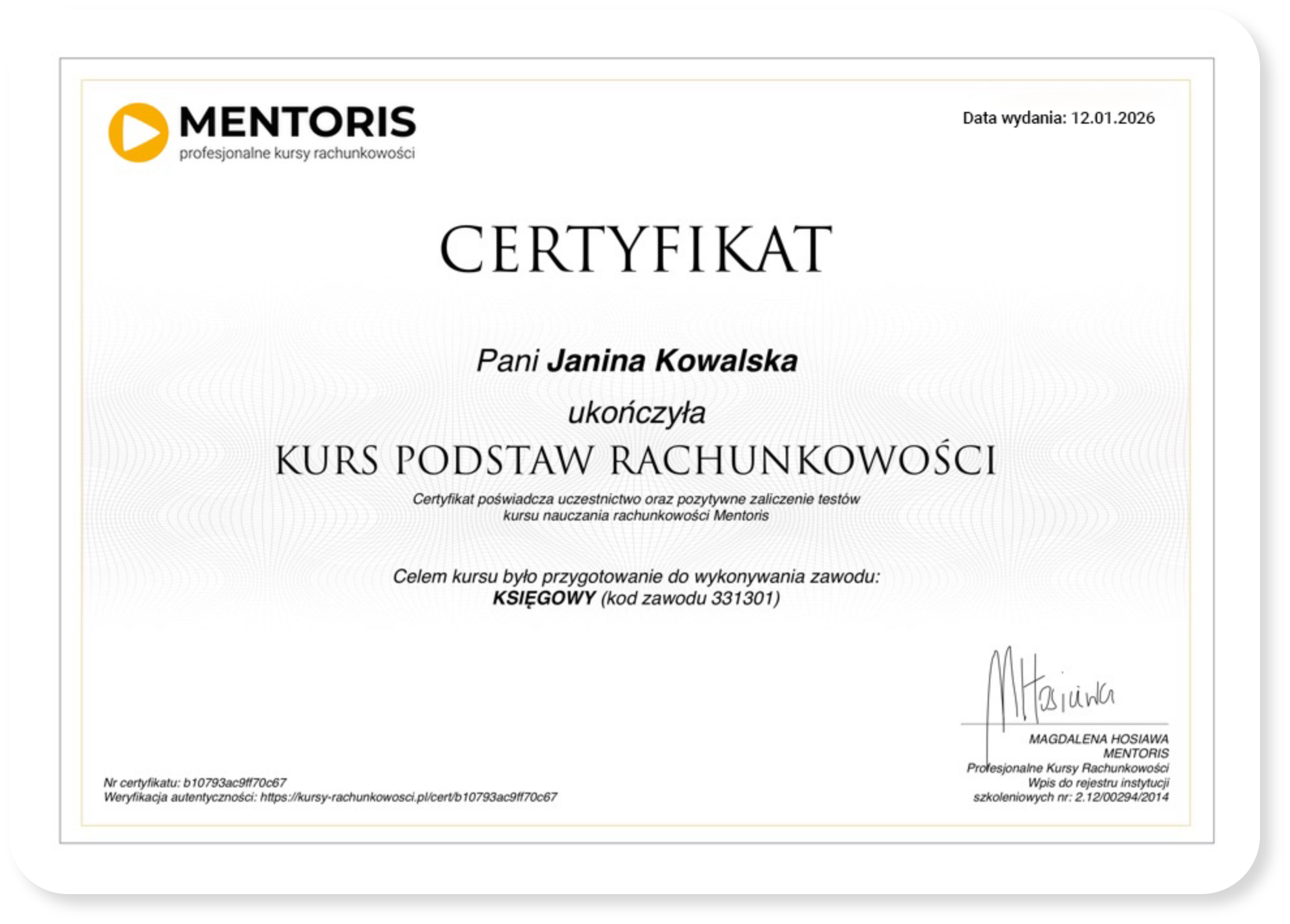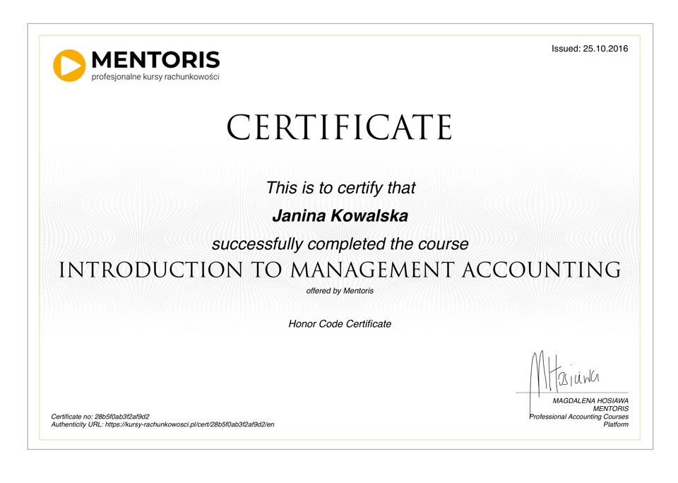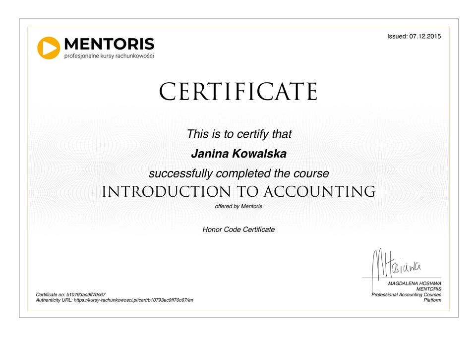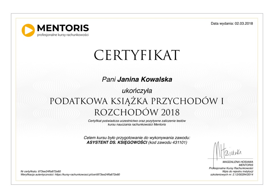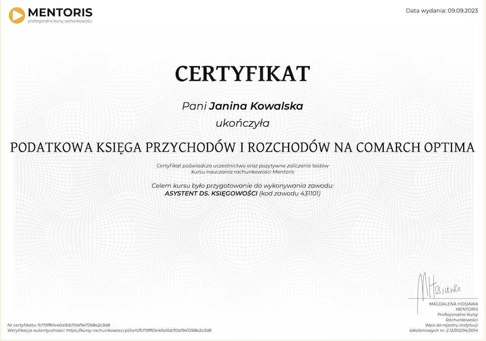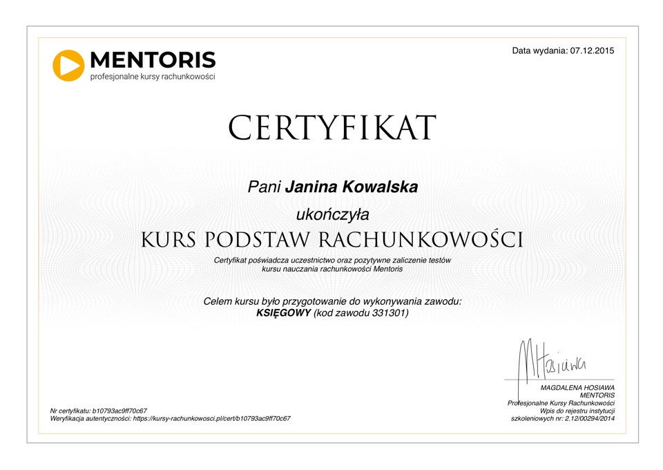 Druk certyfikatu można zamówić po ukończeniu danego kursu.